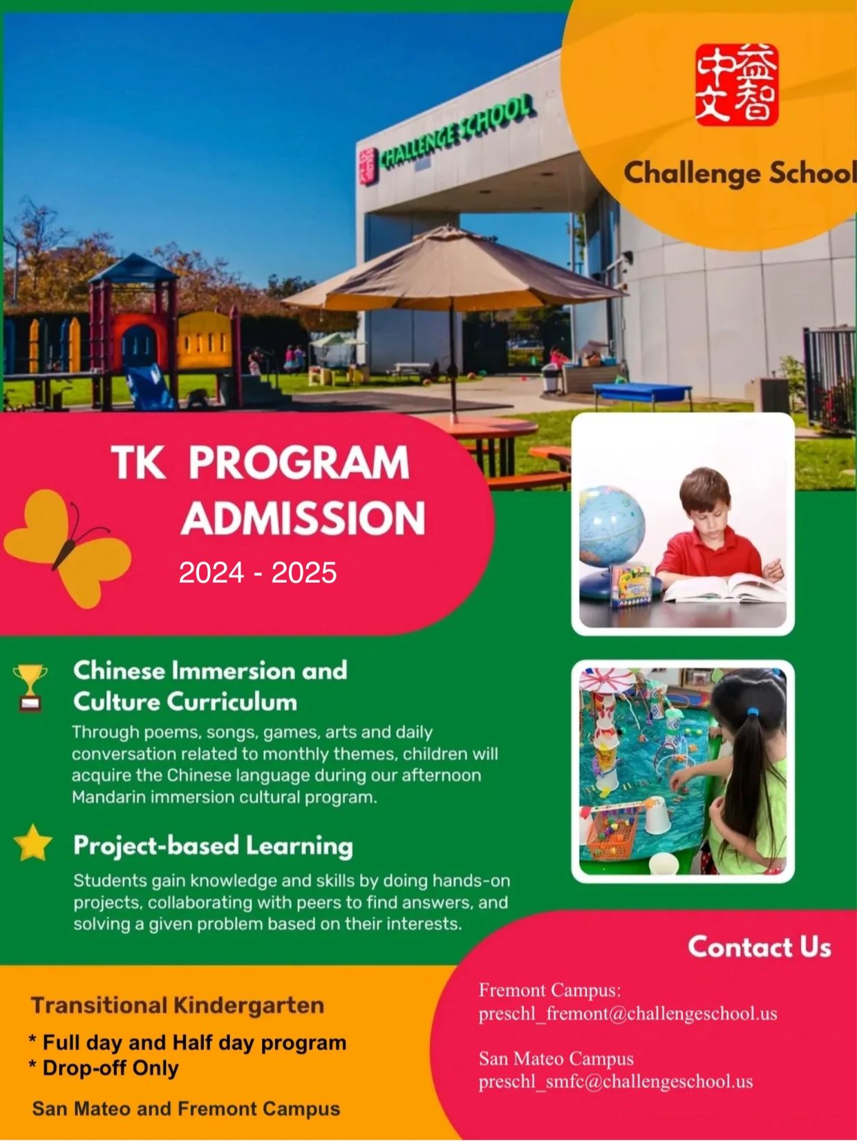 当您的孩子最需要时,我们的 TK 计划为他们提供结构化、低师生比例的环境,帮助他们过渡并为进入kindergarten 做好准备。When your child needs the most, our TK program offers a structured, low teacher-child ratio environment for them to transition and prepare for kindergarten.